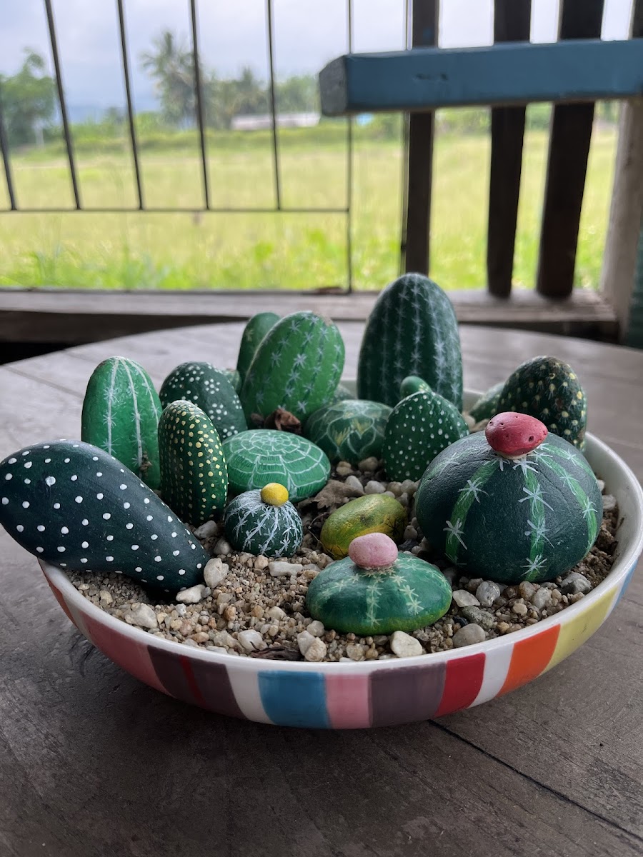 What sets Wanalee Café apart is its unique design and cozy atmosphere. The decor features an eclectic mix of wooden panels—each painted in different hues—that adds a touch of artistry to the space, making it feel warm and inviting. You might also notice charming stone paintings and other artistic elements scattered throughout, lending an organic yet vibrant touch to the overall experience. As 'หมี มีพุง' highlighted, the café embraces nature beautifully, situated beside a tranquil pond where the refreshing breeze complements your coffee break.